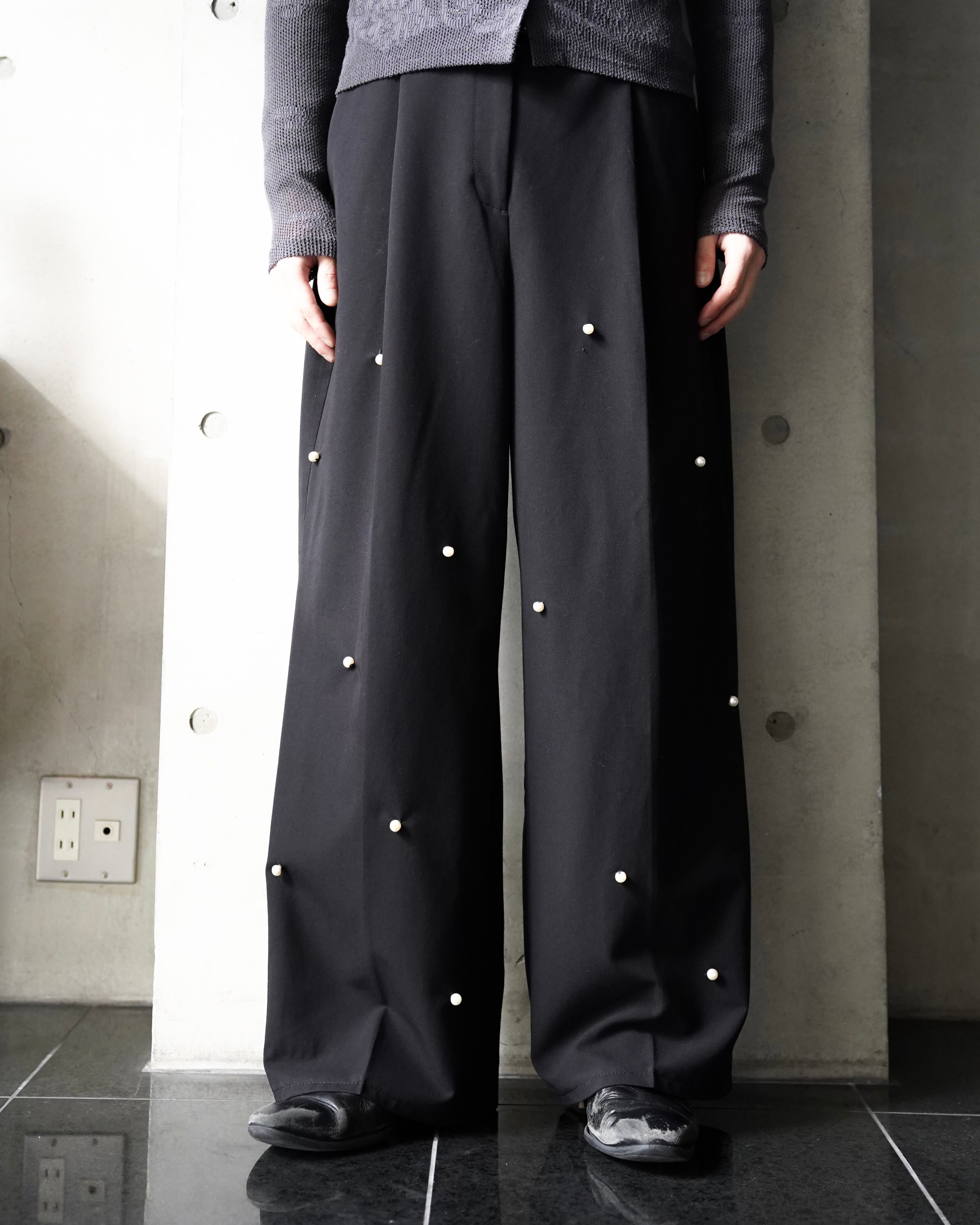 90s perl center press wide dress flare trousers
