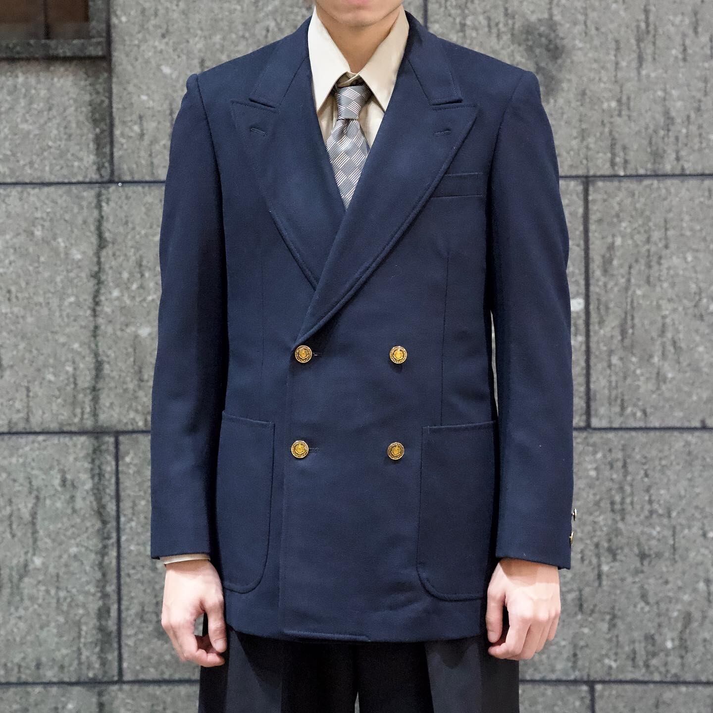 gold button navy jacket