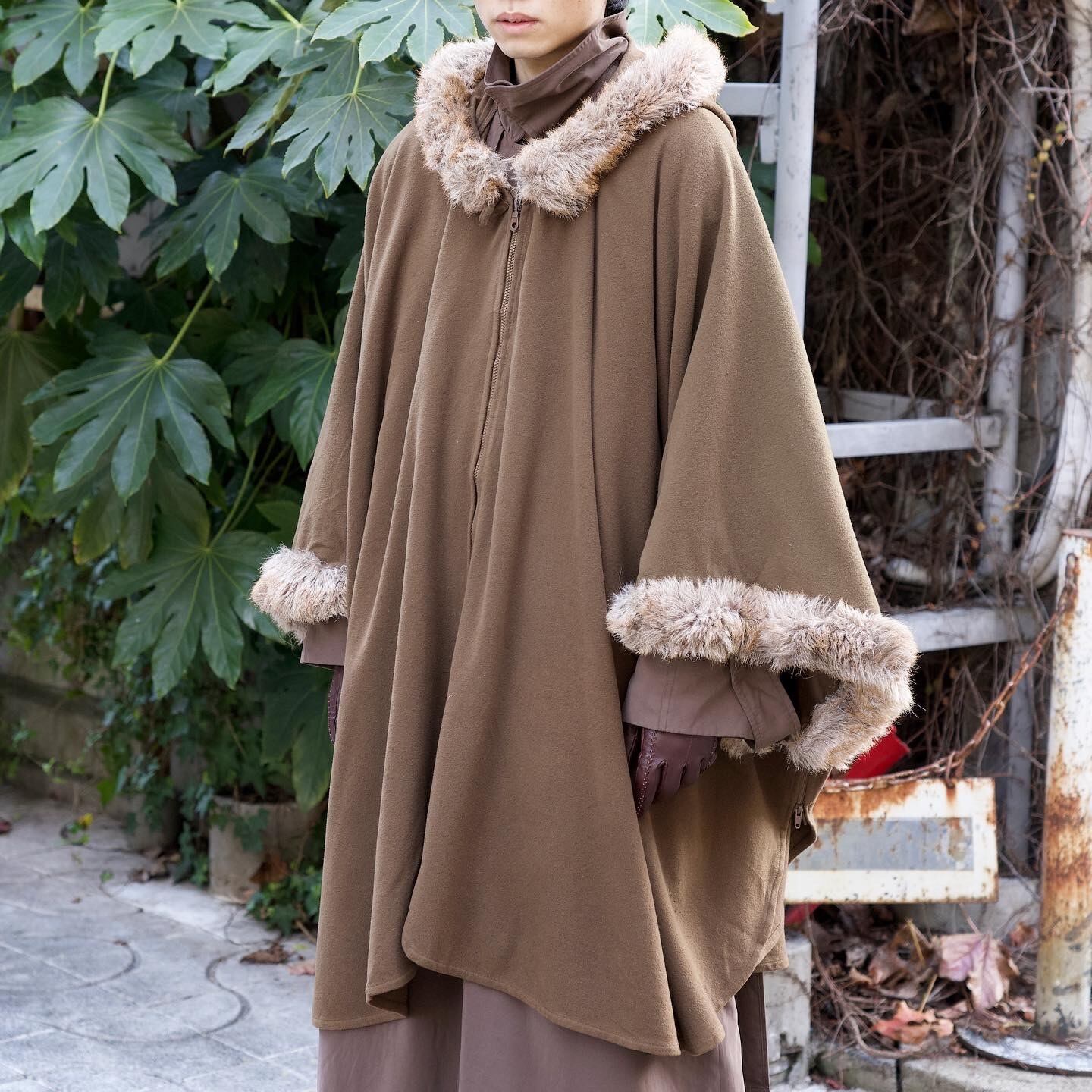 wool fur hoodie cape