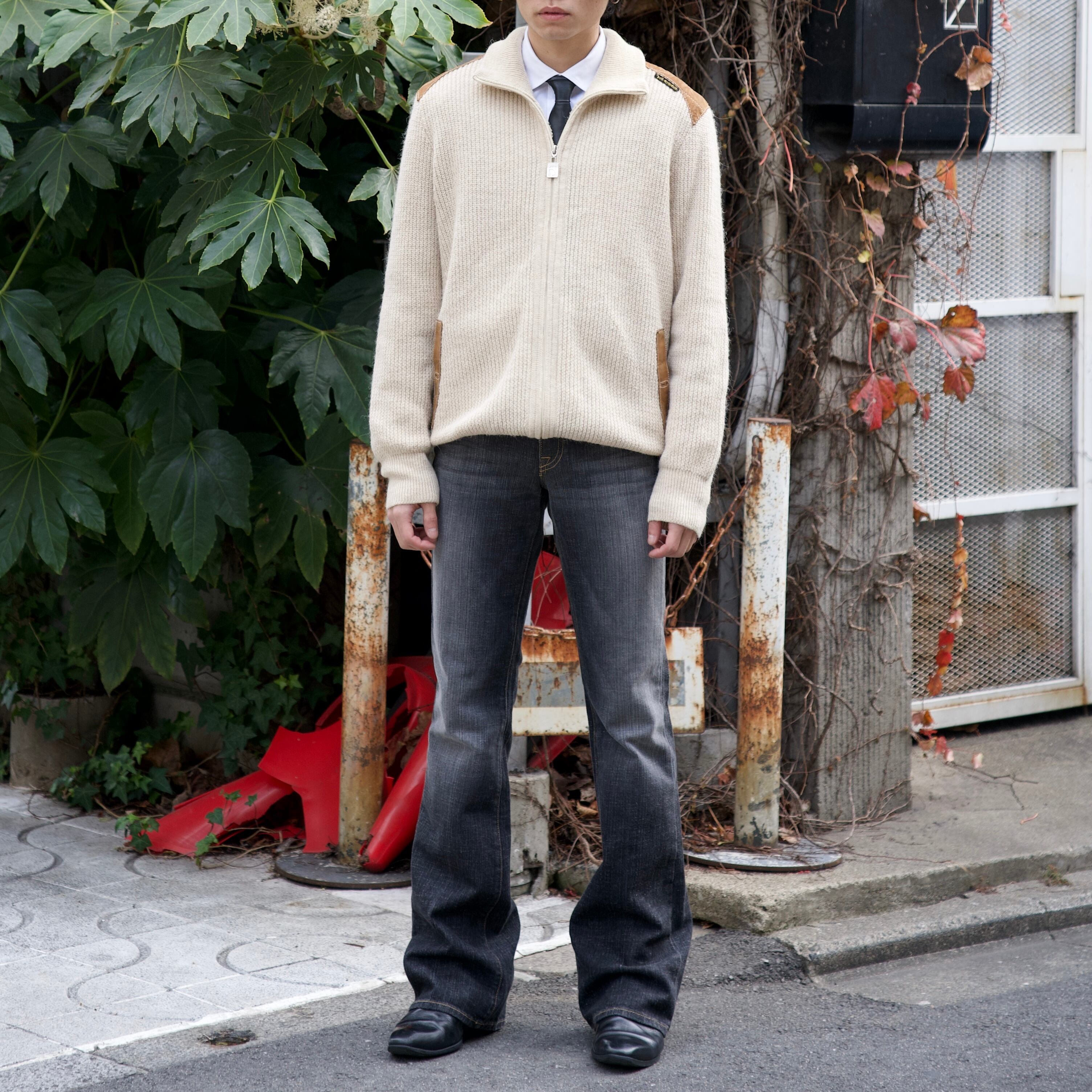 shoulder leather zip cardigan