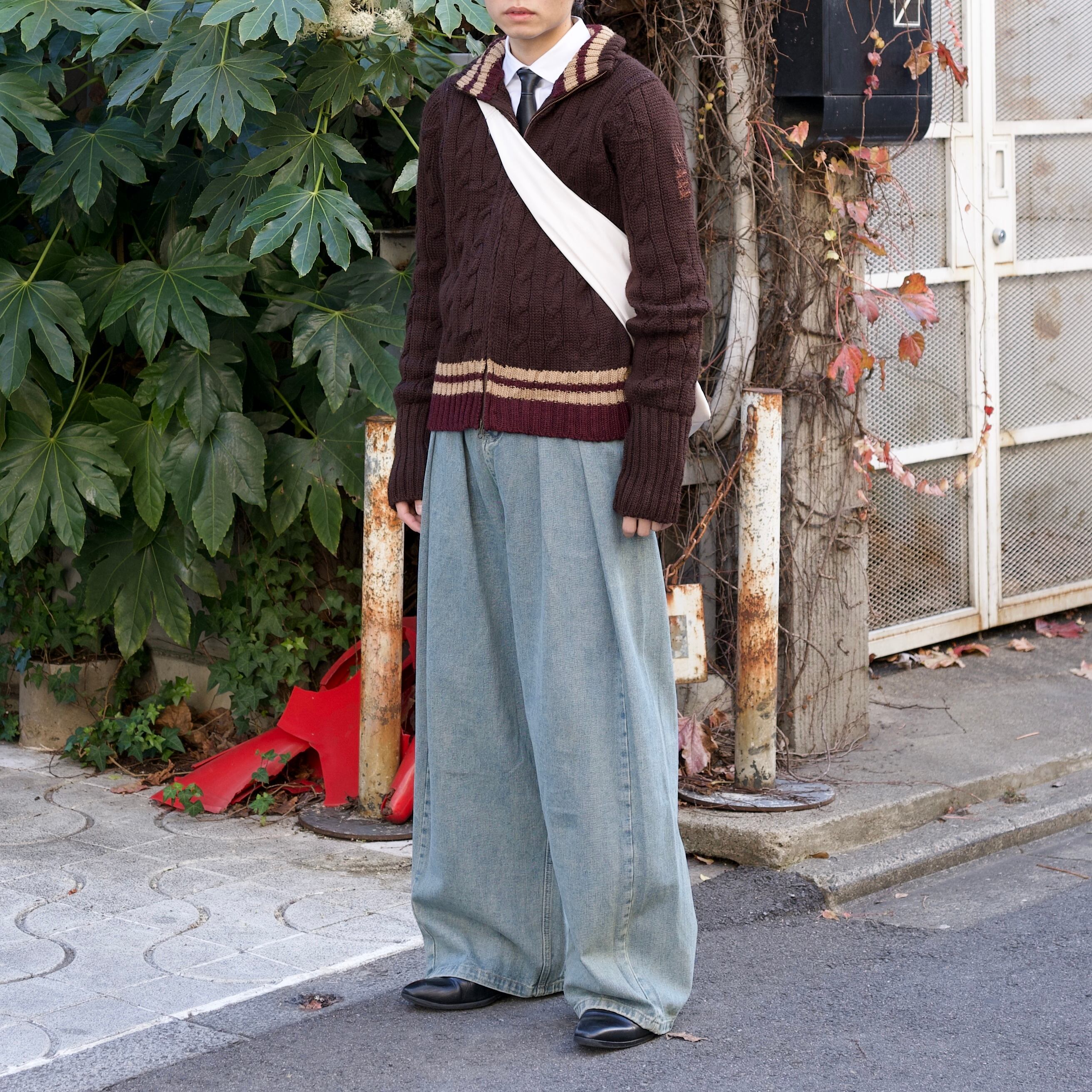 double zip design rib vintage knit
