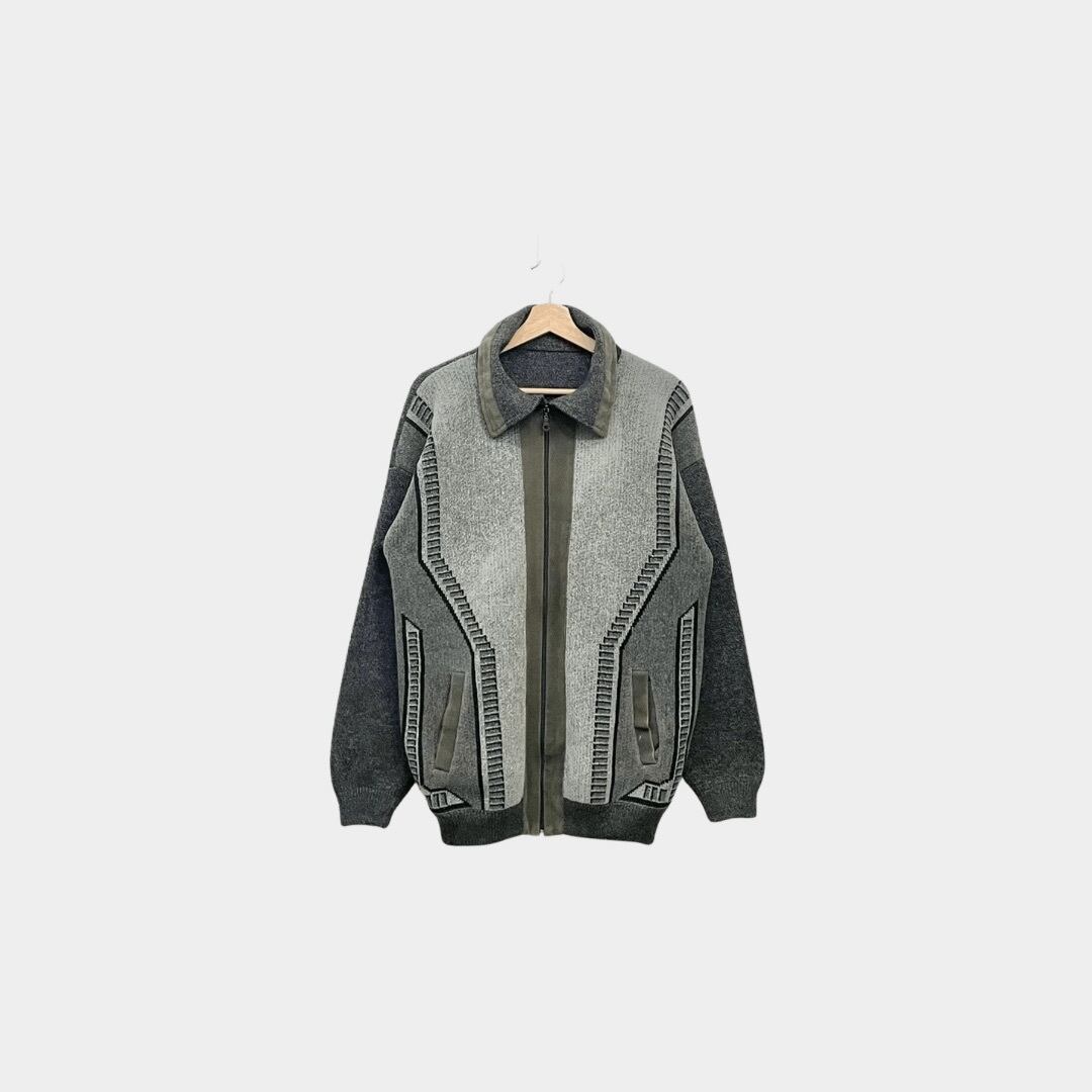 full zip design pattern knit cardigan