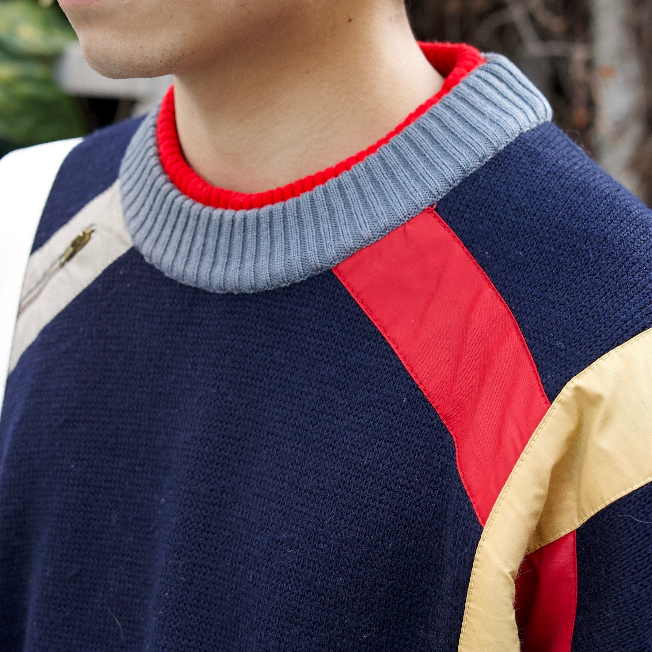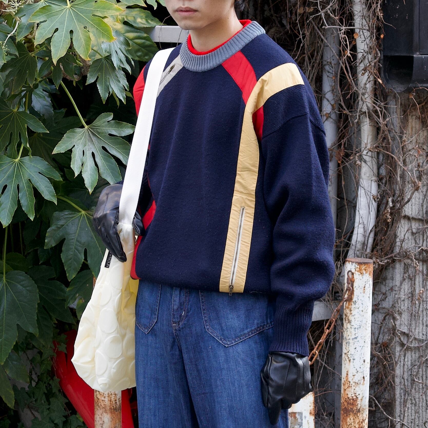 line zip design knit sweater