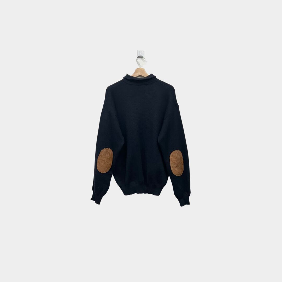 elbow patch polo knit sweater