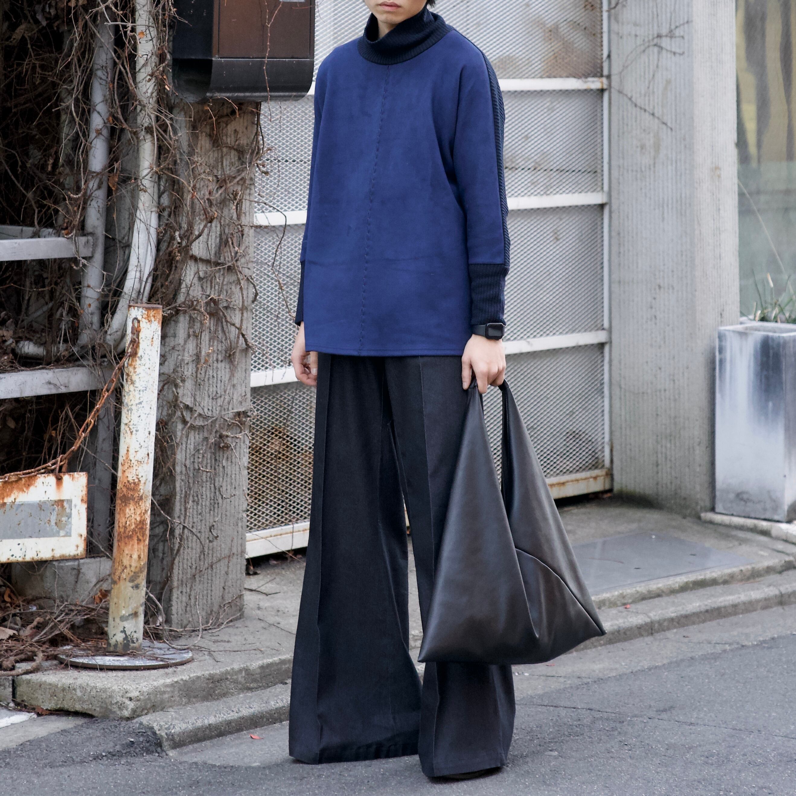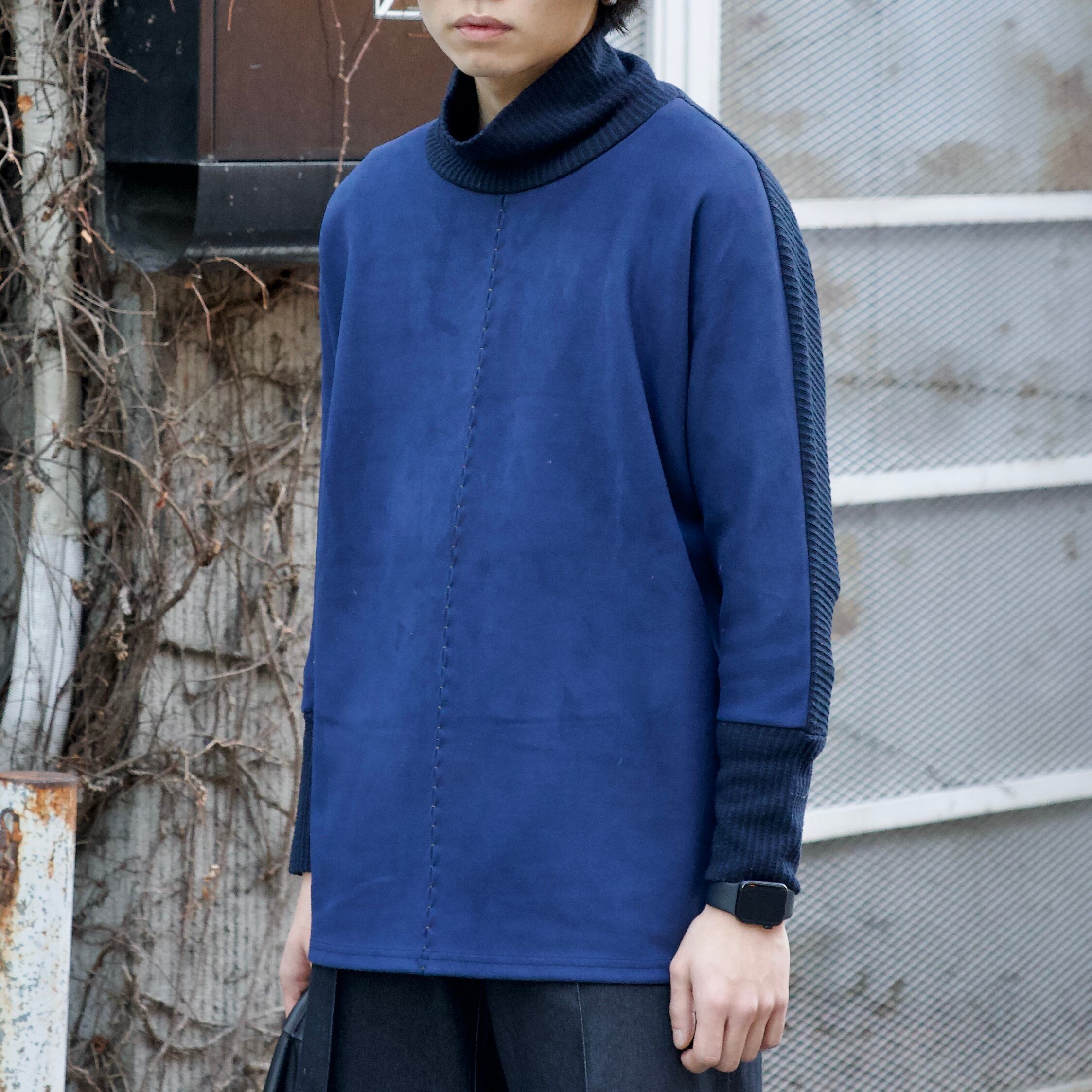 high neck switching knit sweater