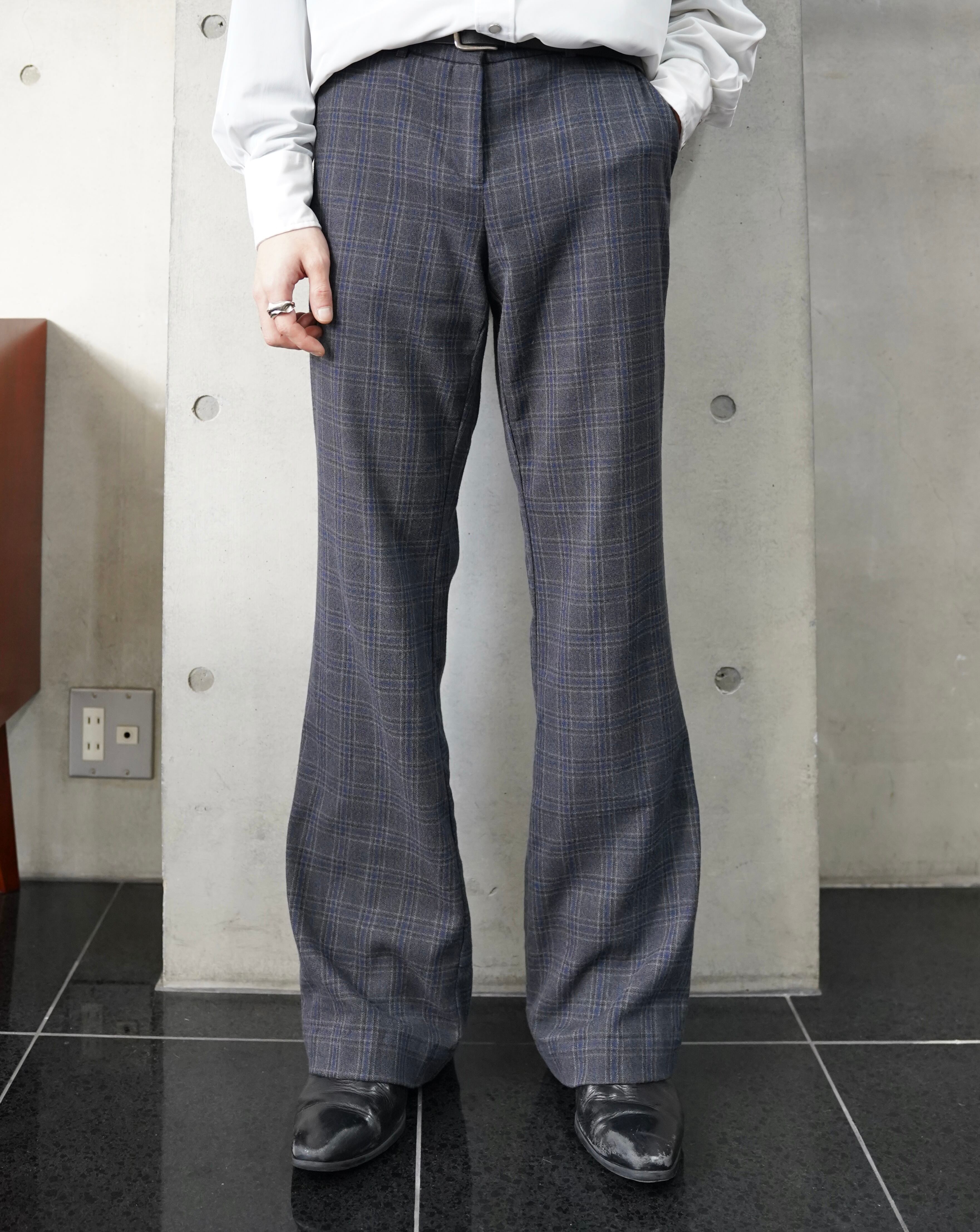 check dress flare trousers