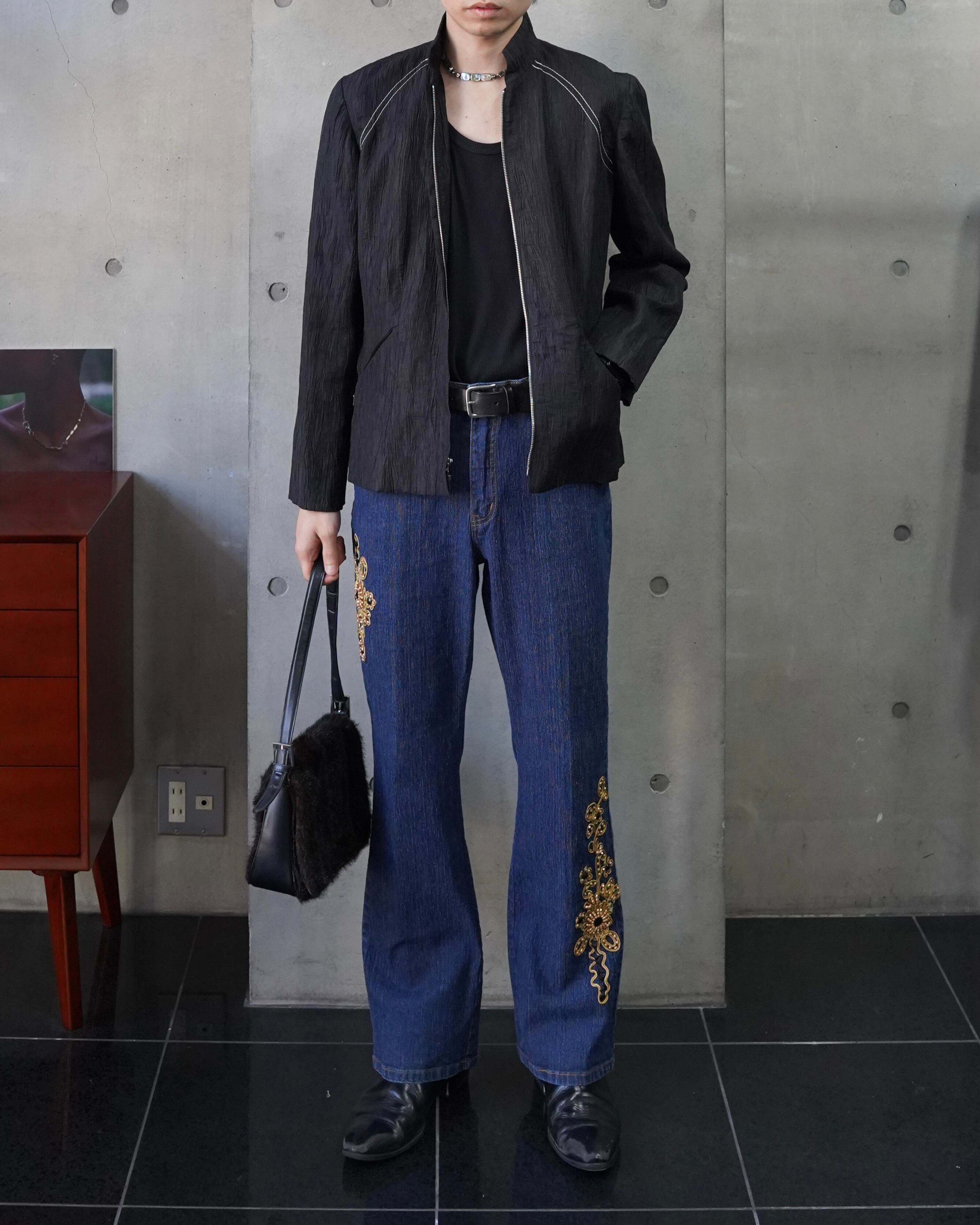 embroidery flare denim