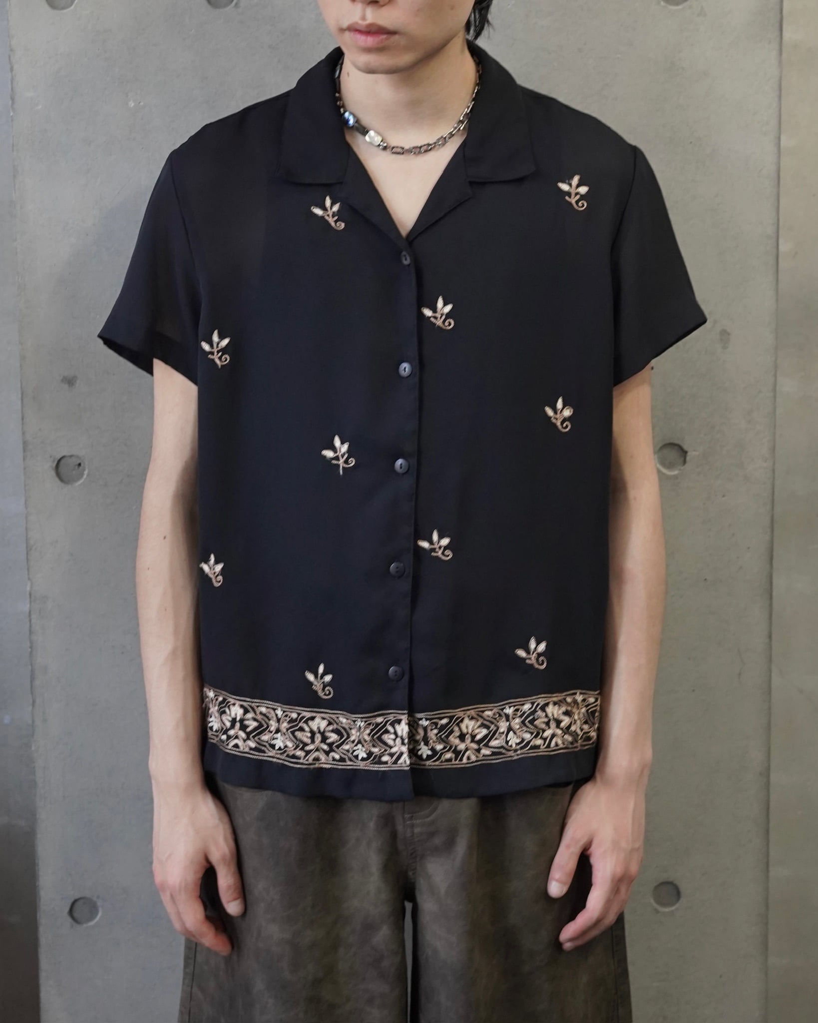 embroidery open color half sleeve shirt