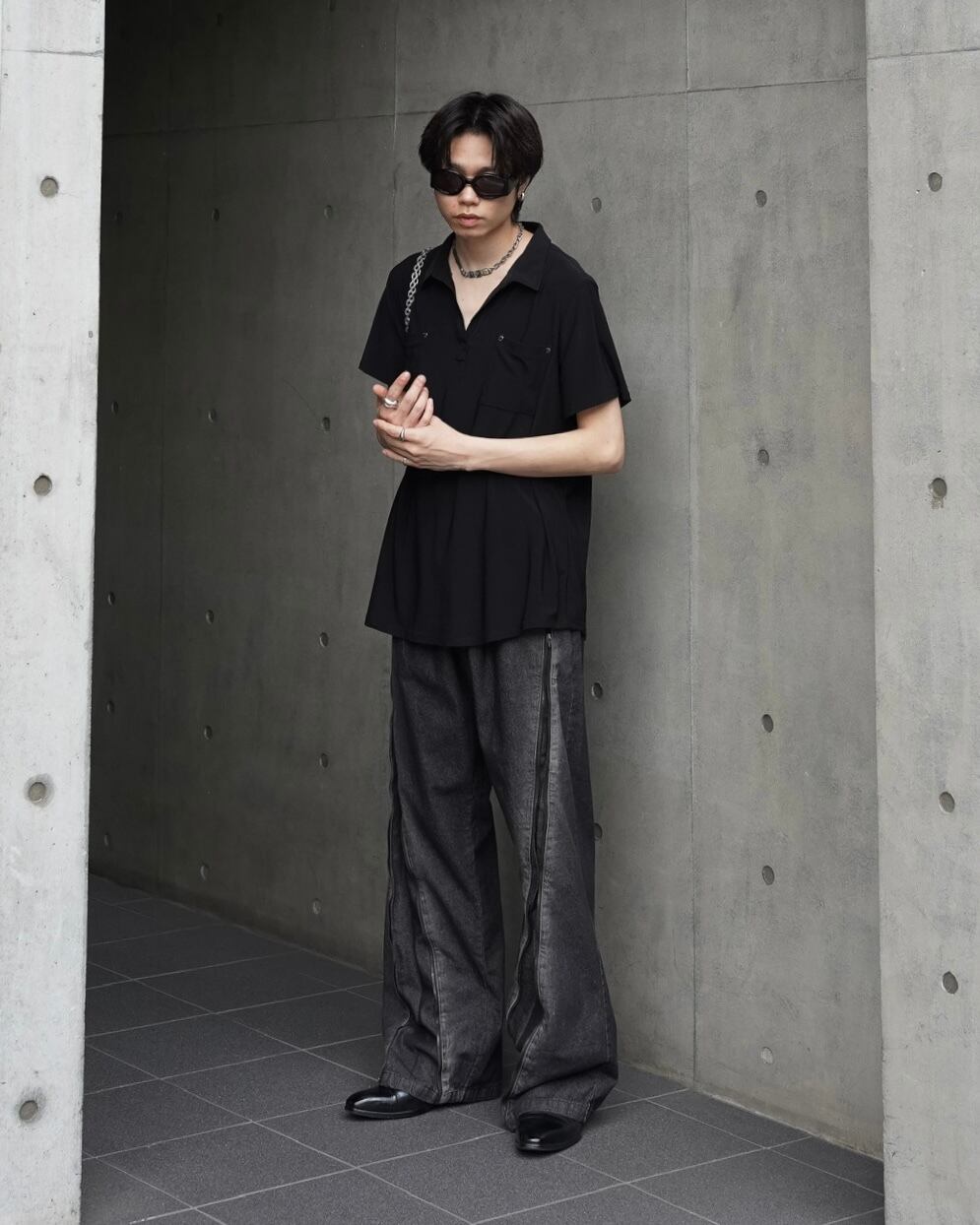 studs detail open collar summer shirt