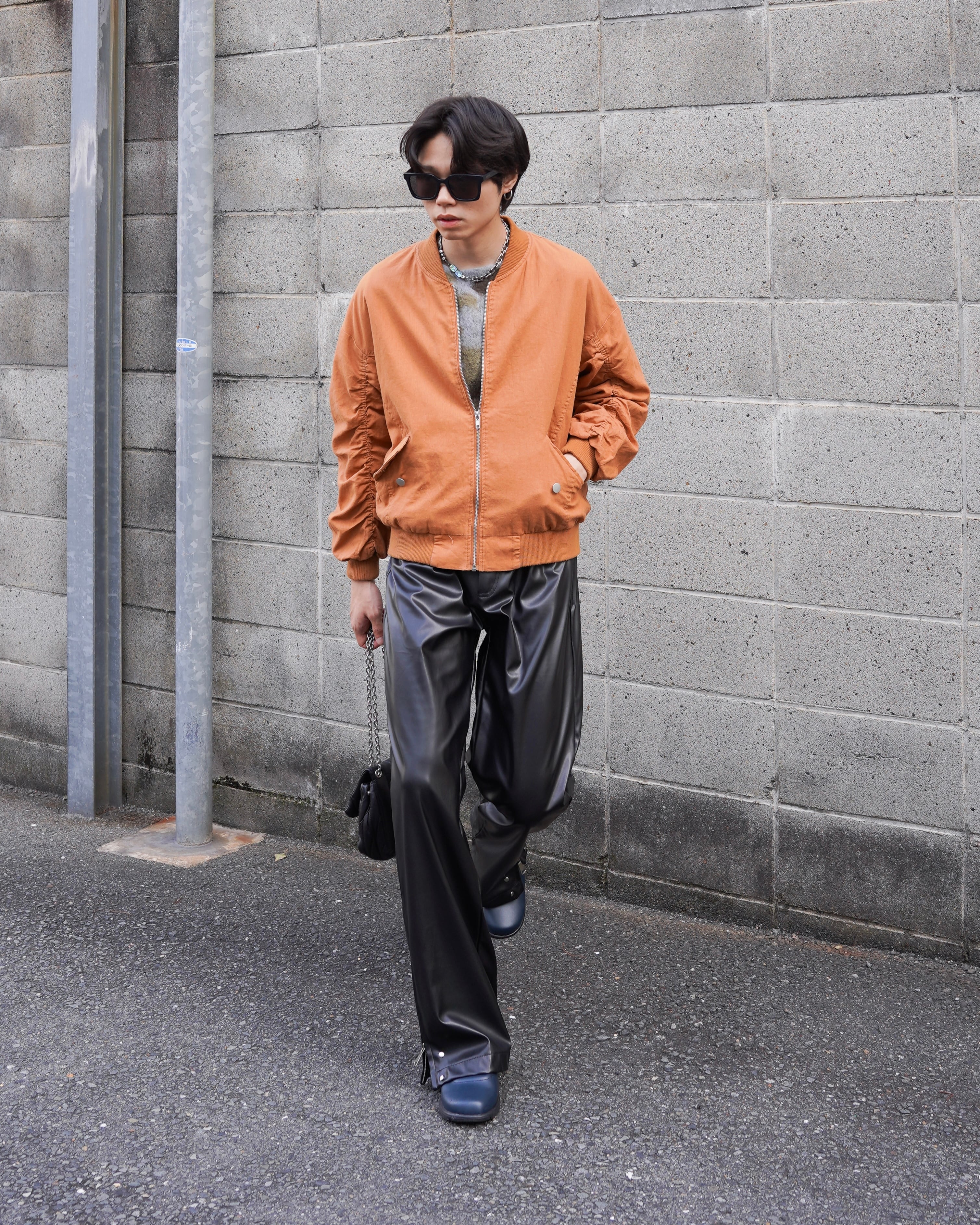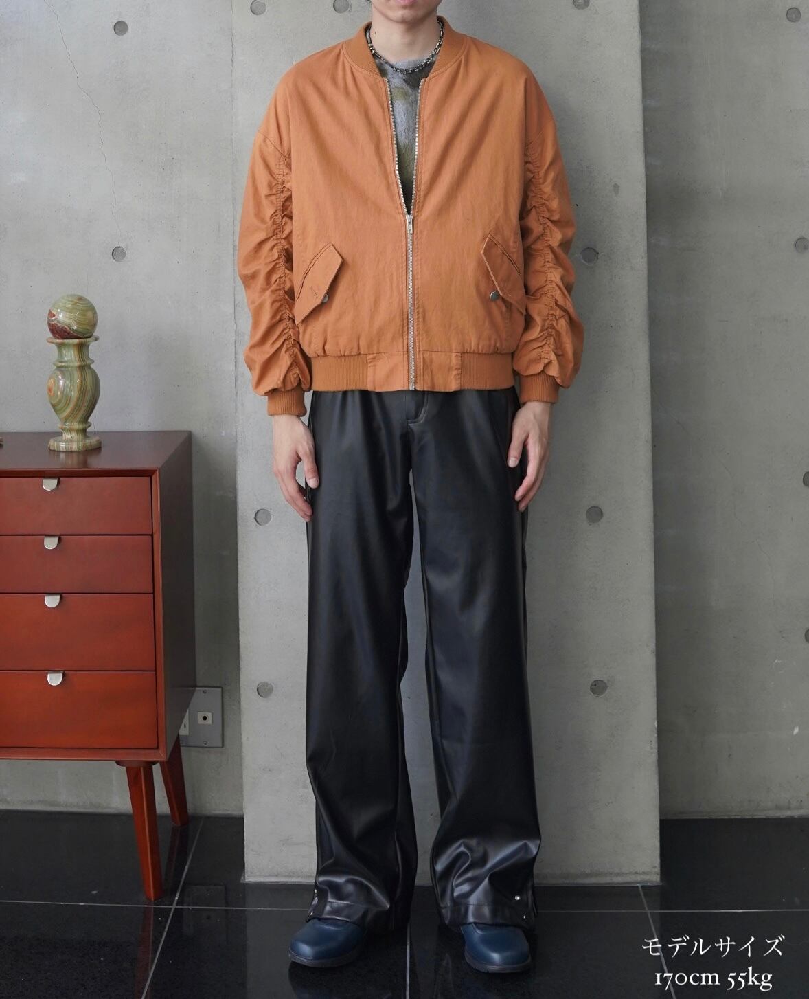 90s Shirring sleeve bomber jacket