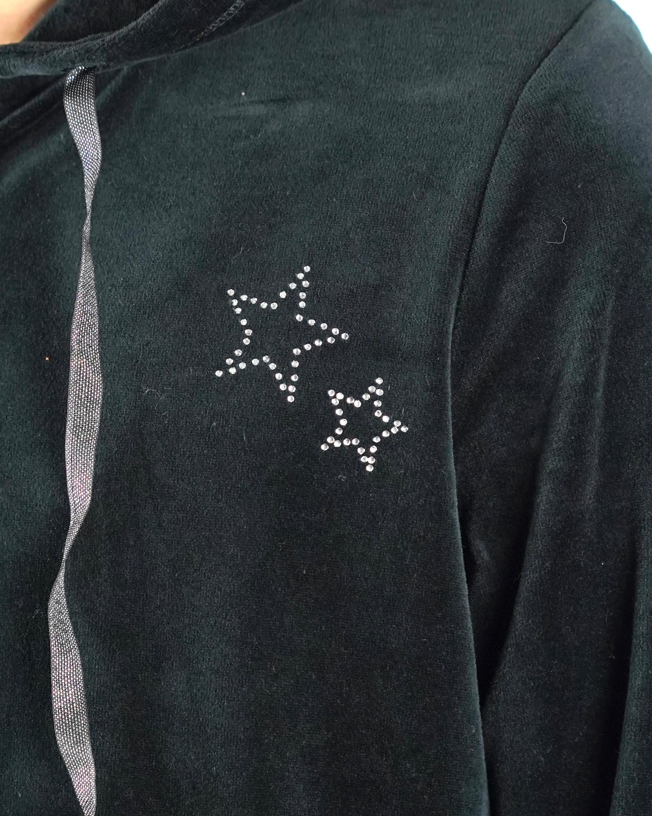 90s star detail velour hoodie