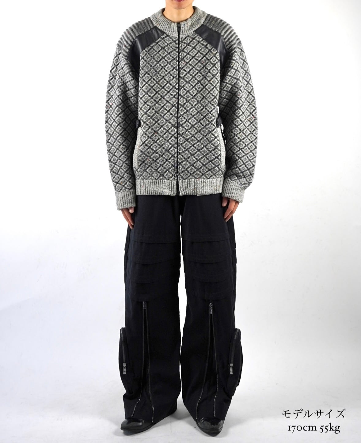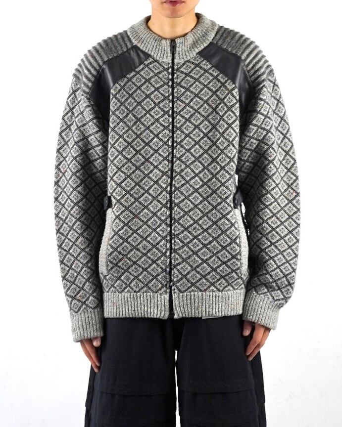 90s pattern zip up knit sweater