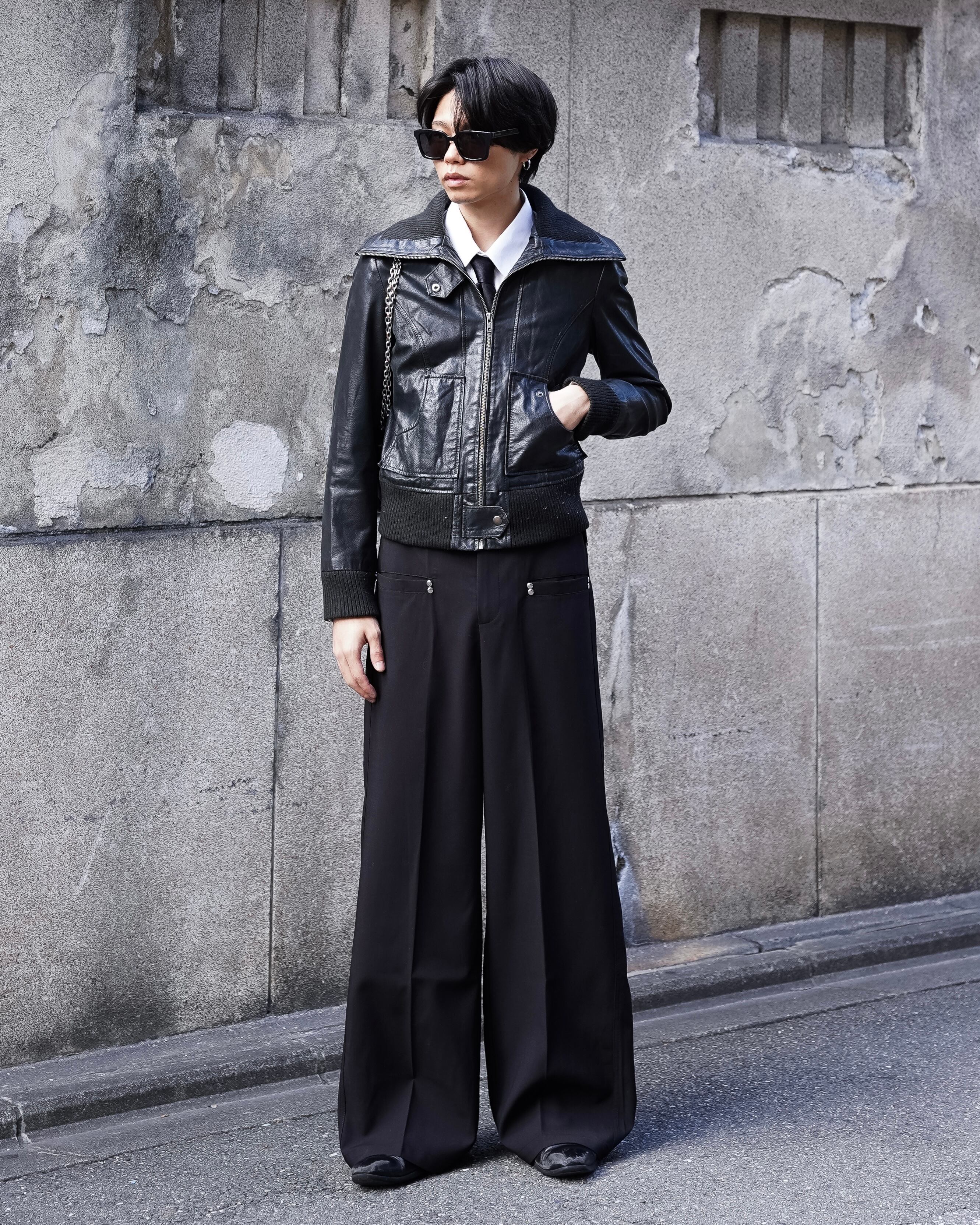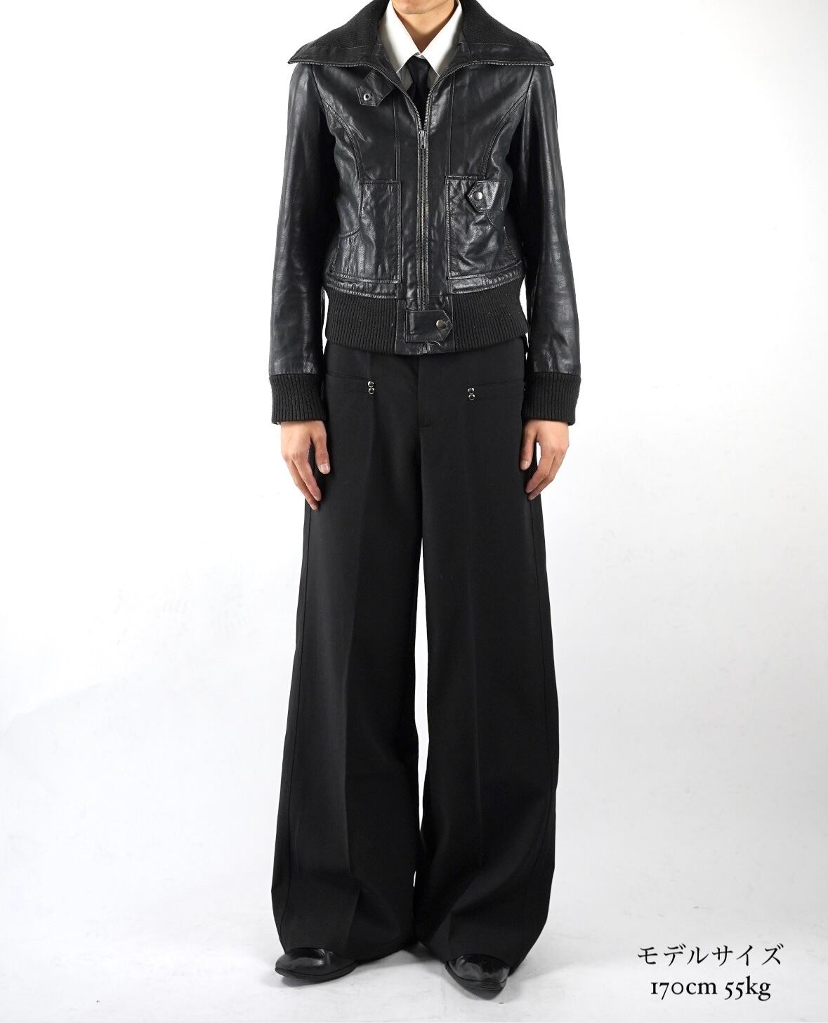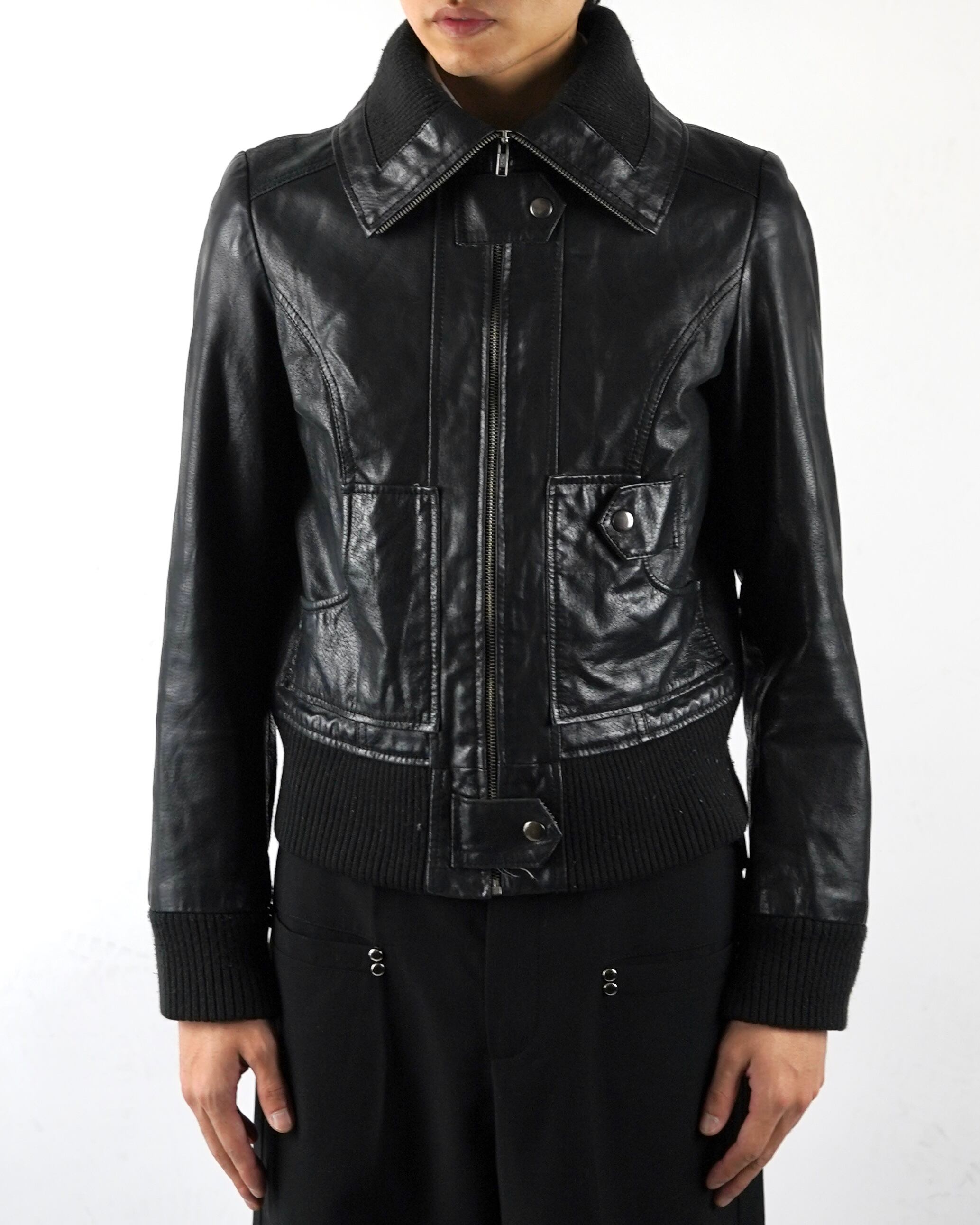 90s sailor collar zip up leather jacket