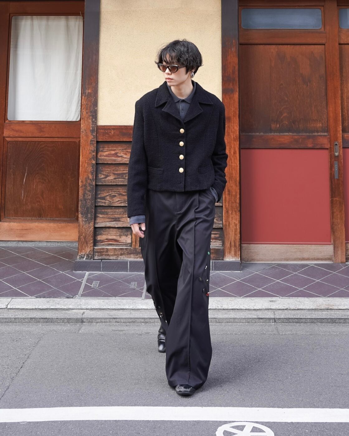90s short length gold button single jacket